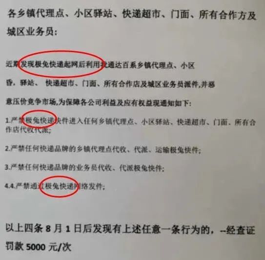 而且,据《人物》报道,每单快件揽收后如果24小时内没有发往分拨中心的记录,通达系企业就会被拼多多罚款5到10元,但极兔就不会。