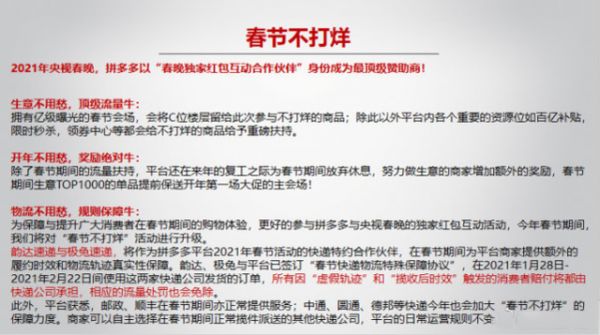 拼多多指定极兔和韵达作为2021年春节活动特约伙伴