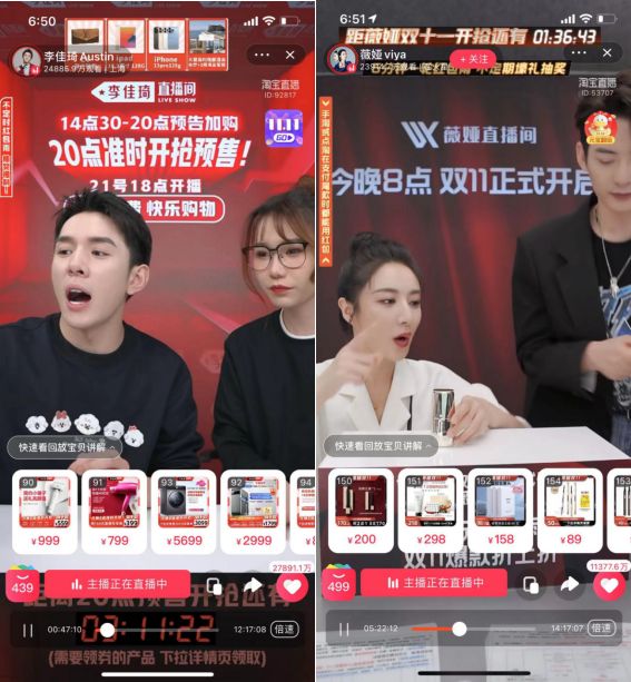 据悉,去年双11预售期间,李佳琦和薇娅两人合计交易额近80亿,但今年仅凭一人就完成超越。有数据显示,昨晚预售结束,李佳琦、薇娅直播间的累计观看量分别达到2.5亿和2.4亿,累计交易额分别约为107亿元和83亿元。