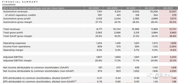 按照美国通用会计准则 (GAAP) 计算,特斯拉 2021 年三季度共实现营收达到 137.57 亿美元,同比增长 57%。