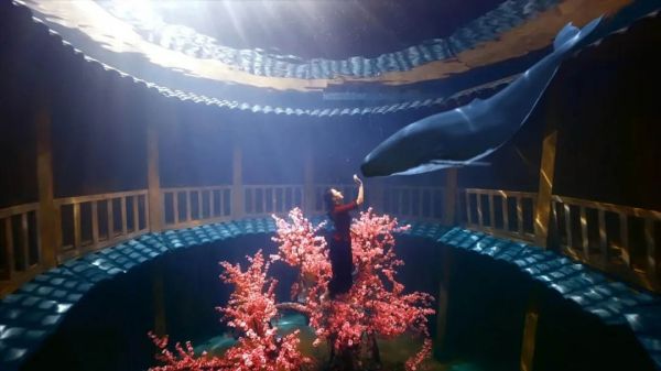 之前的跨年演唱会上,江苏卫视以鲸鱼的一跃震撼全场,这次的《飞猪奇妙之旅》中,同样也融入了不少黑科技,CG动画、虚拟特效等逐个登场,甚至包括此前的“鲸鱼”也在水下重逢。