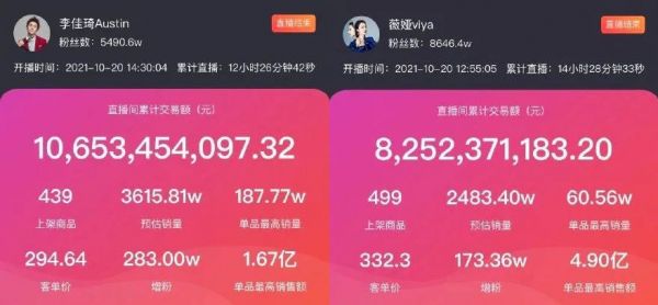 作为双十一战场前线的淘宝,更是数次崩了,在淘宝直播平台的李佳琦和薇娅,销售数据直接爆表,其中,李佳琦直播间累计交易额高达115亿元,薇娅直播间累计交易额达85.33亿元。