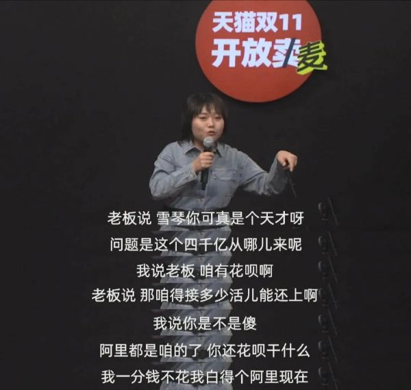 在去年的双十一中,京东联合笑果文化推出《脱口秀大会》双十一番外篇,并打出了“第3.5季”的概念;天猫则是打造了《天猫双11开放麦(卖)》,其中,李雪琴不花一分钱买下阿里的段子更是同样火爆全网。