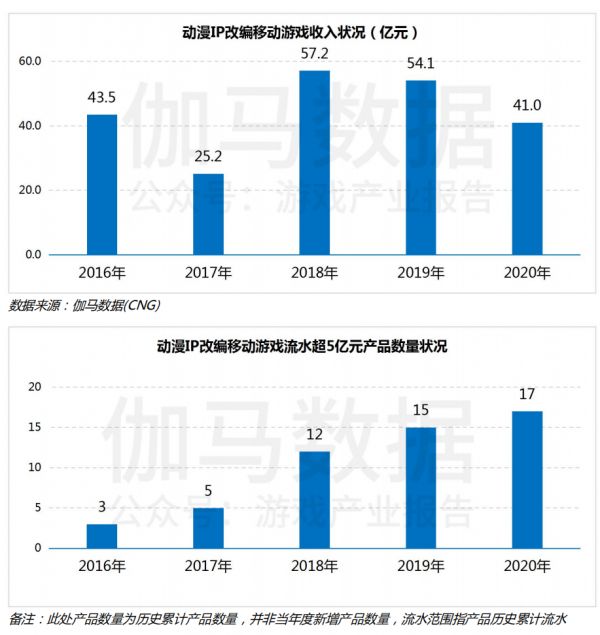 1. 作为当前市场中数量最多的分类之一,动漫IP改编手游在2020年出现了收入负增长(2020年比2019年下降了13.1亿人民币);