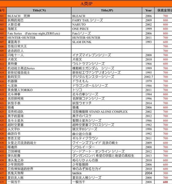 与此同时,随着国内市场正版维权的不断推进,蹭IP的法律风险越来越高,大量热门IP的授权更是被哄抢殆尽。在这种情况下,虽然动漫IP的授权费用也涨了不少,但胜在以集英社、万代、东映代表的日本动漫IP,不仅名气大数量多还基本没有独家买断。