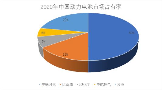 2020年,全球动力电池装机量达到了137GWh,宁德时代以25%的市占率冠绝全球。在中国市场,宁德时代以50%的市场份额,达到了第二名比亚迪的3倍多。