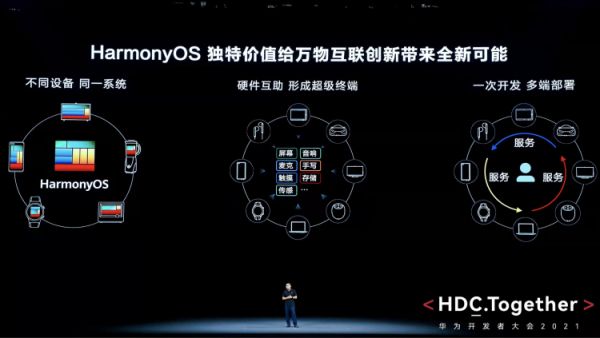 “HarmonyOS是以用户为中心的场景化的开发模式,所以它就可以很好的实现一次开发多端部署,包括免安装、服务直达以及应用和服务,在设备之间无缝流转这样的一些特性。”华为消费者业务软件部总裁龚体称。