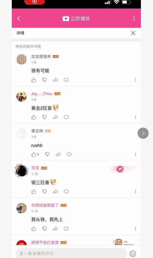 说到这里,有一点是需要补充的,iOS与安卓不同,iOS的“返回”指的是返回上一层页面而并非是返回上一步操作,这就会导致另一种情况的出现。比如我们在B站观看评论区的评论时,在iPhone上使用滑动返回的操作,就会直接退出视频页面,而安卓端则可以回到评论区。