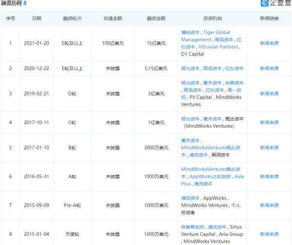 据企查查数据,成立至今货拉拉已完成8轮融资,最近一轮由博裕资本、高瓴资本等知名投资机构投资的15亿美元E轮以上的募资,估值达到了100亿美元。