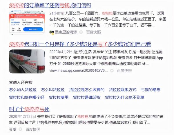 目前货拉拉虽未披露盈利状况,但同行竞争者快狗打车招股书曾披露,2018年—2021年4月间,快狗打车就净亏21.62亿元;市场上也经常曝出货拉拉司机“跑单不赚反亏”的消息。