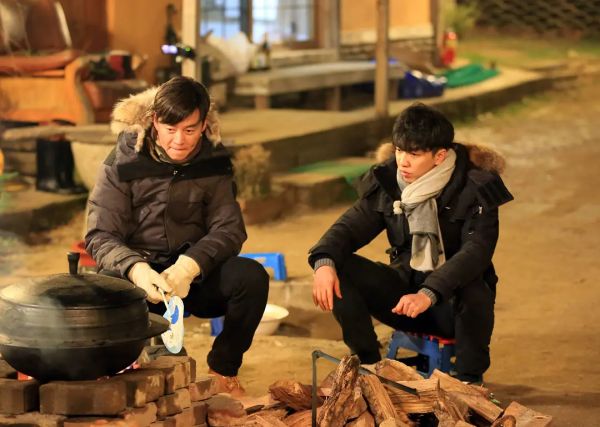 在杀青片场,节目组直接将99s几位演员拉到了乡下,自己动手搭灶、做饭,以劳动换取食物的生活就此展开。实际上,从大体上看,《机智的山村生活》基本延用了《三时三餐》的节目逻辑:以“三餐”为切入点,围绕着“三餐”展开故事。而嘉宾之间回归日常的互动和化学反应,则是笑点、泪点、治愈感的主要来源。