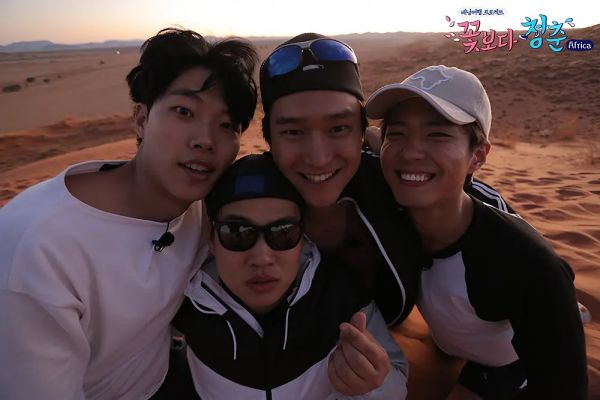 不止《机智的医生生活》和《顶楼》,韩剧的售后团综也有迹可循。2016年,《花样青春·非洲篇》就是以《请回答1988》的“双门洞兄弟”为固定嘉宾,大致就是以四位演员在非洲的旅游为内容,某种程度算得上《请回答1988》的售后综艺。