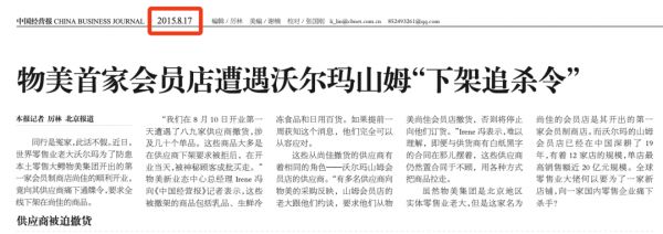 2015年就有媒体报道,物美遭山姆“下架追杀令”