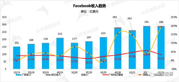 1)三季度总收入同比增35%达290亿美元,低于彭博一致预期的295亿美元;预期差主要来自于广告收入。亮眼的是支付等其他收入(包含Oculus),同比暴增195%,一改二季度的低迷,恢复了新兴业务的高景气度。长桥海豚君猜测,新版Quest 2可能贡献较大。