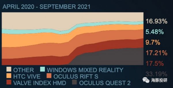 我们从一直跟踪的Steam VR头显市占率情况也能窥知一二。截至9月底,Quest 2在Steam玩家中渗透率达33%,相比上季度末的31%进一步提升。