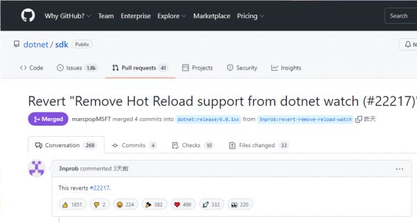 即便微软决定恢复 .NET SDK 中热重载(Hot Reload)功能,还是引起了众多网友的议论。