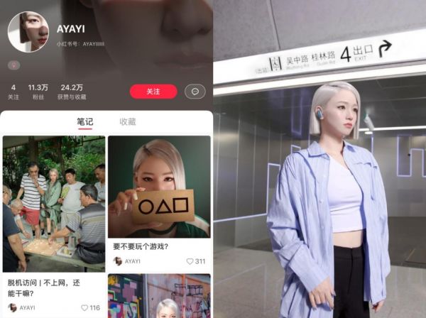 一个年轻的女孩子穿着深绿色的风衣,凑在小区凉亭里看一群大爷下象棋。只有女孩的一头银发,隐隐透露出她赛博朋克的意味。这是小红书上很火的“AYAYI”,一个虚拟人。