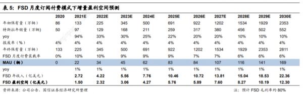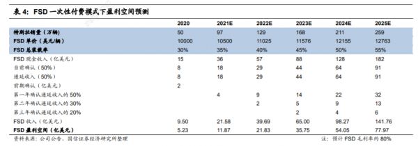 FSD在资本上拥有多少想象空间?在2020年第一季度的财报会议上,Zachary Kirkhorn披露,截止2020年Q1,特斯拉的FSD递延收入已经超过6亿美元。国信证券在此基础上推算出,2020年FSD收入约为9.50亿美元。国信证券分析师在最新的研报中推算得出,“预计2025年,FSD贡献收入119.84亿美元,在营收端占比提升至12%。此外,后续内置的功能型软件的激活、娱乐导向的应用型软件变现、中长期订阅服务或将特斯拉成为新增长点。届时,软件将成为其商业模式核心组成部分,财务数据将更反应特斯拉的科技属性。”