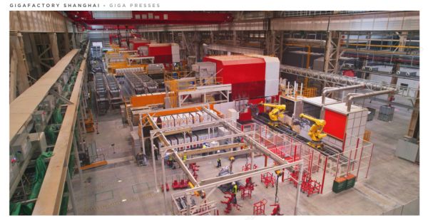 (上海超级工厂的Giga Press超巨压铸机)