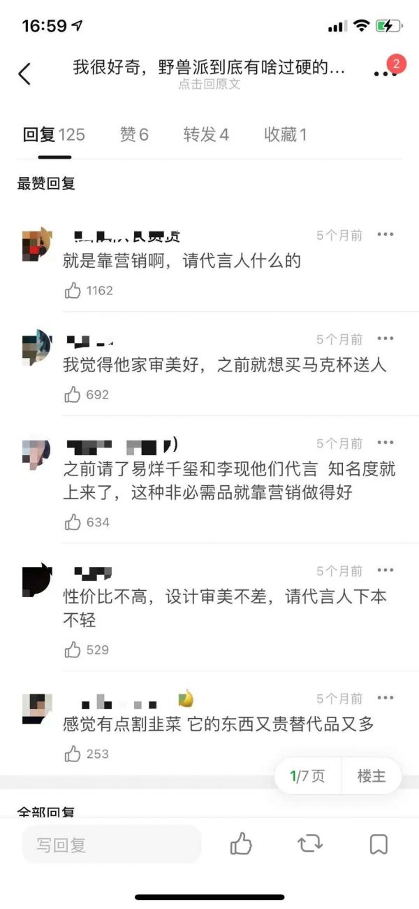 并不是王濛一个人觉得野兽派贵,豆瓣有个讨论野兽派的帖子,这条帖子下面有125条回复,几乎是对野兽派这个品牌一边倒的差评:“就是靠营销”、“性价比不高”、“感觉有点割韭菜,它的东西又贵替代品又多”、“谁红找谁拍广告”。