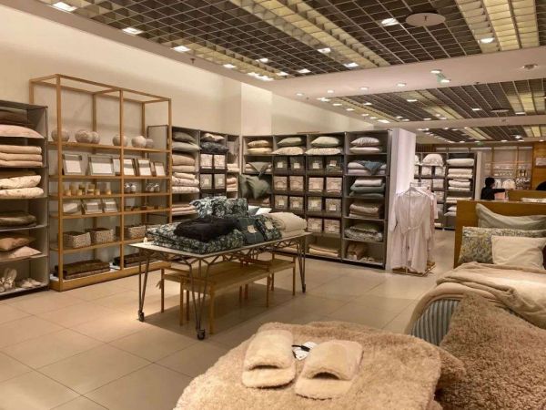 tbh这种适合年轻一族的大面积撞色设计,与旁边极简风格的ZARA HOME形成了强烈对比。喜欢逛ZARA HOME的应该能联想到,全国门店统一暖黄色调,门店之间在选品上也相对统一,在定价上更是围绕“小资”一族,价格不会贵的离谱,让大众普遍都消费得起。反观tbh门店中,动辄4000元一套的四件套,2000一套的睡衣,不禁让人直呼溢价严重。