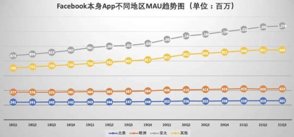 从Facebook单一平台月活用户增长情况来看,亚太地区是增长最快的地区。