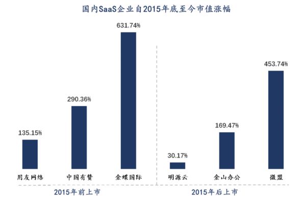 现在,国内的第一批 SaaS 企业:金蝶、用友、泛微以及后来的凡科建站,还有以微擎、有赞为代表的微信应用都成为了业内的佼佼者,市场占有量巨大。