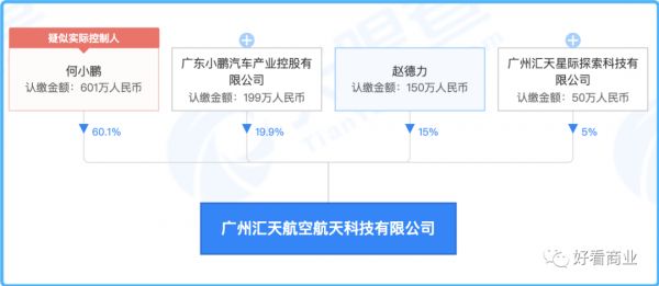 小鹏汇天于2020年注册成立,由何小鹏个人和小鹏汽车等共同投资,何小鹏持股超60%,小鹏汽车持股19.9%。
