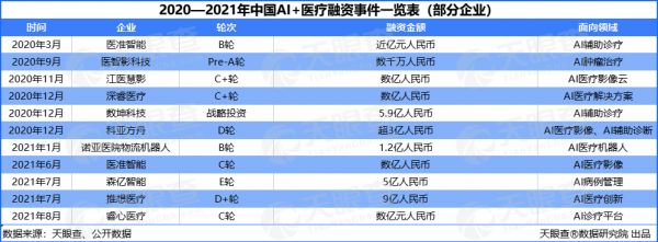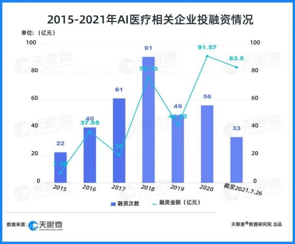 AI+医疗赛道火爆,2020年至今获得融资额将近200亿元人民币
