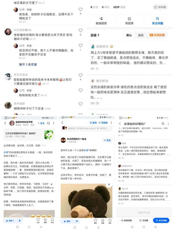 联名确实给永璞带来了很多话题,这些话题有褒亦有贬。《壹览商业》从多家社交平台了解到,关于“永璞不好喝”、“冲着包装去的”、“冲着周边去的”这样的评价有很多。