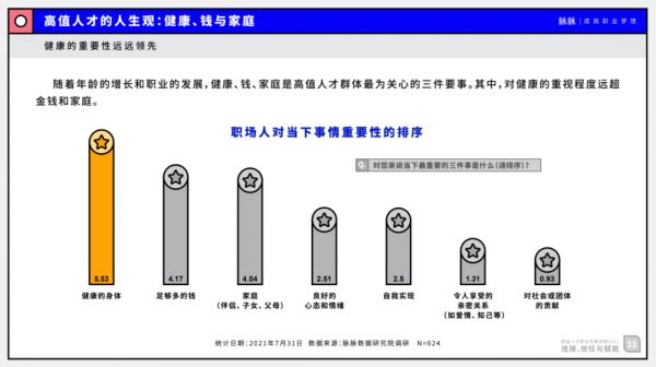 脉脉数据研究院在今年发布的《高值人才职业发展洞察》报告中显示,健康的身体、钱和家庭是职场人最为看中的三件事。而越在意的事情,记忆越深刻。在职场人追忆前任公司时,这些因子也成为了前任们美好的一部分。