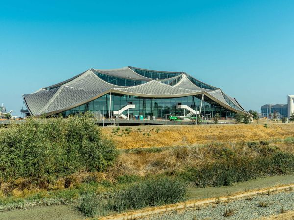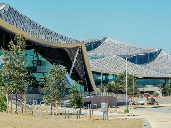谷歌把这座最新园区设想成自己一个更加宏大的雄心的体现,那就是要实现完全的无碳运营。该公司计划在明年 1 月份向“有限数量”的员工开放湾景城,具体数量要看疫情的走势。在建筑物下方,埋着成千上万根混凝土柱子,这些柱子会作为一种地热电池,储存热量,从而在没有天然气的情况下为建筑物供暖和供水。屋顶面板由纹理独特的玻璃制成,可防止眩光,而檐篷可向内部宽敞的中庭输送柔和的光线。Google 房地产部门负责能源决策的Asim Tahir戴着安全帽、口罩还有安全背心站在南入口处,他说:“我们把它叫做工作大教堂。”