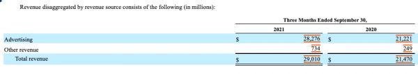2021年第三季度,Facebook的收入构成