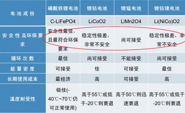 磷酸铁锂成本低、寿命长、安全性好、但能量密度略低;