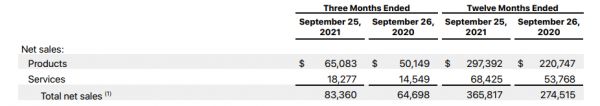 截自苹果2021财年Q4财报