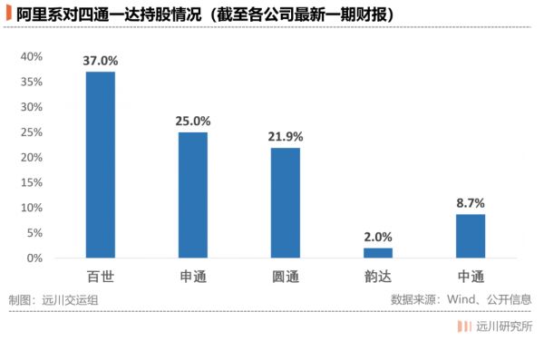 阿里系对“四通一达”均有投资,但比较尴尬的是,持股比例最高的百世和申通(阿里甚至向申通空降了高管)目前经营最困难;而持股比例最低的中通和韵达,反而逐渐胜出。
