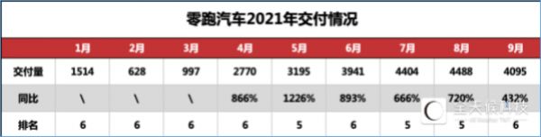 乘联会发布的销量数据显示,零跑汽车9月销量4095辆,2021年累积销量达到27817辆,相较去年,已经实现了跨越式增长。