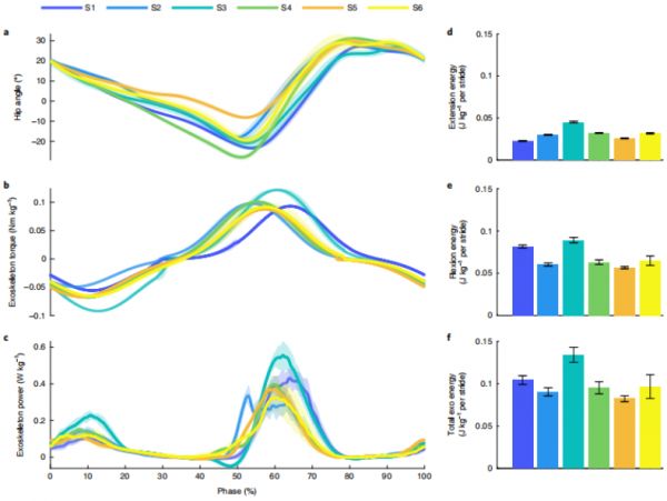图|外骨骼装备在跑步机上以1米/秒运动时的参数值(来源: Nature Medicine )