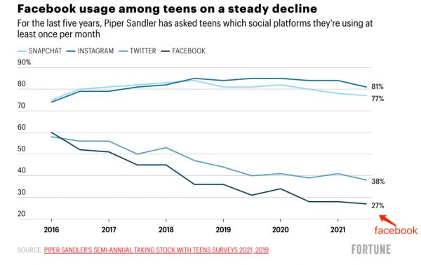 首先从用户层面来说,Facebook已经不再是年轻人喜爱的平台了。