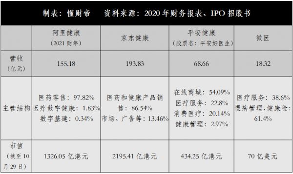 如阿里健康、京东健康更聚焦于药品零售,在在线诊疗方面、健康险方面较为薄弱。即便是背靠平安集团的平安健康,其健康险部门也才组建不久,还未能实现业务融合发展。另外,微医在医药零售领域的尚有欠缺。