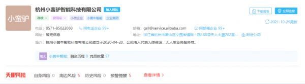 天眼查信息显示,无人车业务服务商杭州小蛮驴智能科技有限公司,于20年4月就已成立。而到了今年9月28日,阿里巴巴集团副总裁、达摩院自动驾驶实验室负责人王刚宣布,达摩院自研的L4级自动驾驶产品、末端物流无人车“小蛮驴”已落地全国22个省份,累计配送订单超100万。