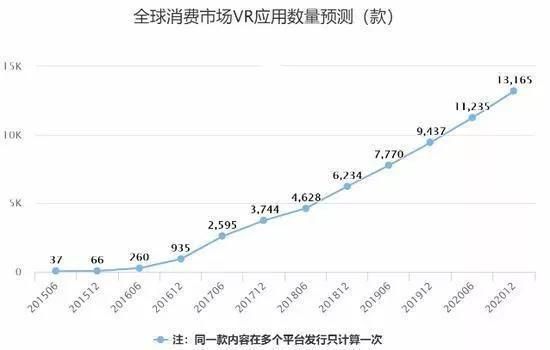 根据相关机构预测,到2021年,全球的VR消费应用数量预计也不过1~2万款,而手机应用Android应用(350万)与iOS应用(220万)数量已经超过550万款。