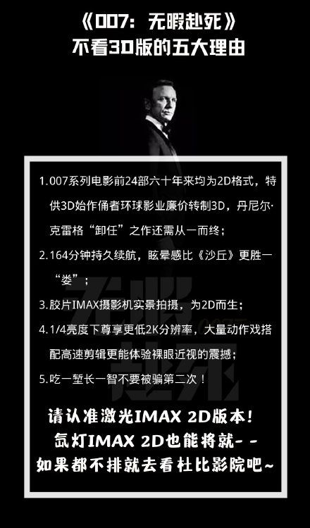 很多人并不知道,《无暇赴死》是007电影首次采用3D格式发行,但和此前24部007电影一样,影片本身是2D摄像机拍摄。此前一周的《沙丘》就因中国特供3D格式陷入争议,首次改成3D的《无暇赴死》正好撞上了众怒的枪口。
