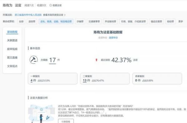 元典智库对法律主体的分析,示例中的陈有为法官是这次「滴滴顺风车杀人案」的承办法官,也是温州中院常务副院长。这样的分析也是国外法律 AI 公司非常青睐的应用场景。