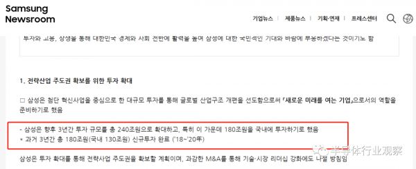8月24日,三星官方宣布计划未来三年将投资240万亿韩元,将用于培育战略业务,包括半导体、生物制药、下一代电信和IT研究。