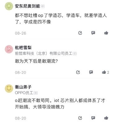 但也有部分业内人士在社交平台爆料,OPPO的战略布局过于保守,甚至对OPPO的广泛布局有些担心,“别人做啥,OPPO做啥”“OPPO敢为天下后”。