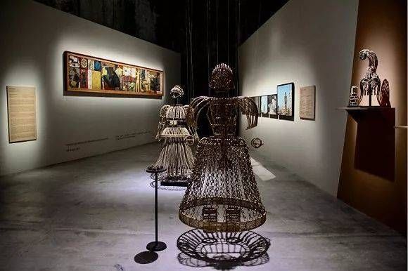 加纳是撒哈拉以南地区首个取得独立的非洲国家(1957年),今年他们首次参展的主题便定为“自由加纳”(Ghana Freedom)。馆内展出的多件作品既反映了加纳本国的历史创伤和社会现实,也可以说是所有非洲前殖民地国家对殖民主义经济掠夺、文化入侵的集体控诉。在David Adjaye的设计下,加纳馆内部被建筑师David Adjaye设计为一连串相互咬合的椭圆形空间,墙壁由赭红色的加纳泥土制作,仍然散发着土地的浓郁气味。