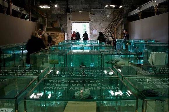 印尼馆以“失落的诗篇”(Lost Verses)为题,探讨人类交流沟通中因缺乏理解前提而出现意义误读,又在持续磋商过程中不断生产新意义的问题。艺术家在现场设置了178个玻璃柜,每个柜子里盛放着一件在印尼文化中有重要意义的物品,柜子上方写有一个问题或一个声明,并附有两三个针对这句话的选项,观众可以根据自己的喜好做出选择,然后跟随提示走向下一个玻璃柜,直至终点。在这里,艺术家对意指和能指之间辩证关系的提问固然有趣,然而因为观众大多对印尼文化缺乏了解,对现场出现的文化符号几乎毫无感知。(有中国观众告诉界面文化记者:“这就是一个大型鸡汤现场。”)呈现给观众的,或许更多是一个类似于跳房子的好玩游戏。