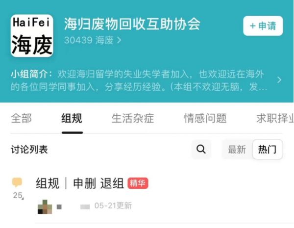 莉莉的困境并非孤例,2020年,大批留学生回到国内,将“海归就业竞争有多激烈”的词条顶上了热门话题。“海归废物回收互助协会”小组人数也随之猛涨。这里集聚着三万名留学归来的海归,吐槽失学失业、工作生活不尽如人意者占大多数。