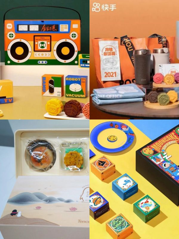 小米走复古路线,礼盒做成了录音机;腾讯走环保路线,月饼盒是用甘蔗渣做成的,6个月就能自然降解。
